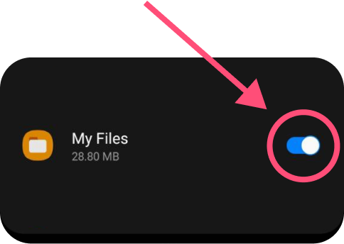 - 3. Allow the installation of the application (APK file) via the "My Files" file manager and select your browser.